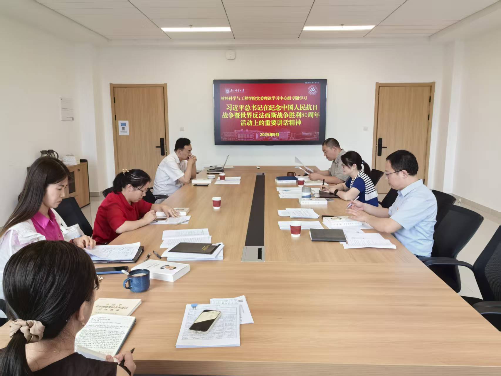 2025年9月17日上午,材料科学与工程学院党委理论学习中心组在学院第二会议室举行专题学习会,专题学习习近平总书记在纪念中国人民抗日战争暨世界反法西斯战争胜利80周年大会上的讲话,学习会由学院党委书记高志华主持,全体中心组成员参加了本次学习会。
