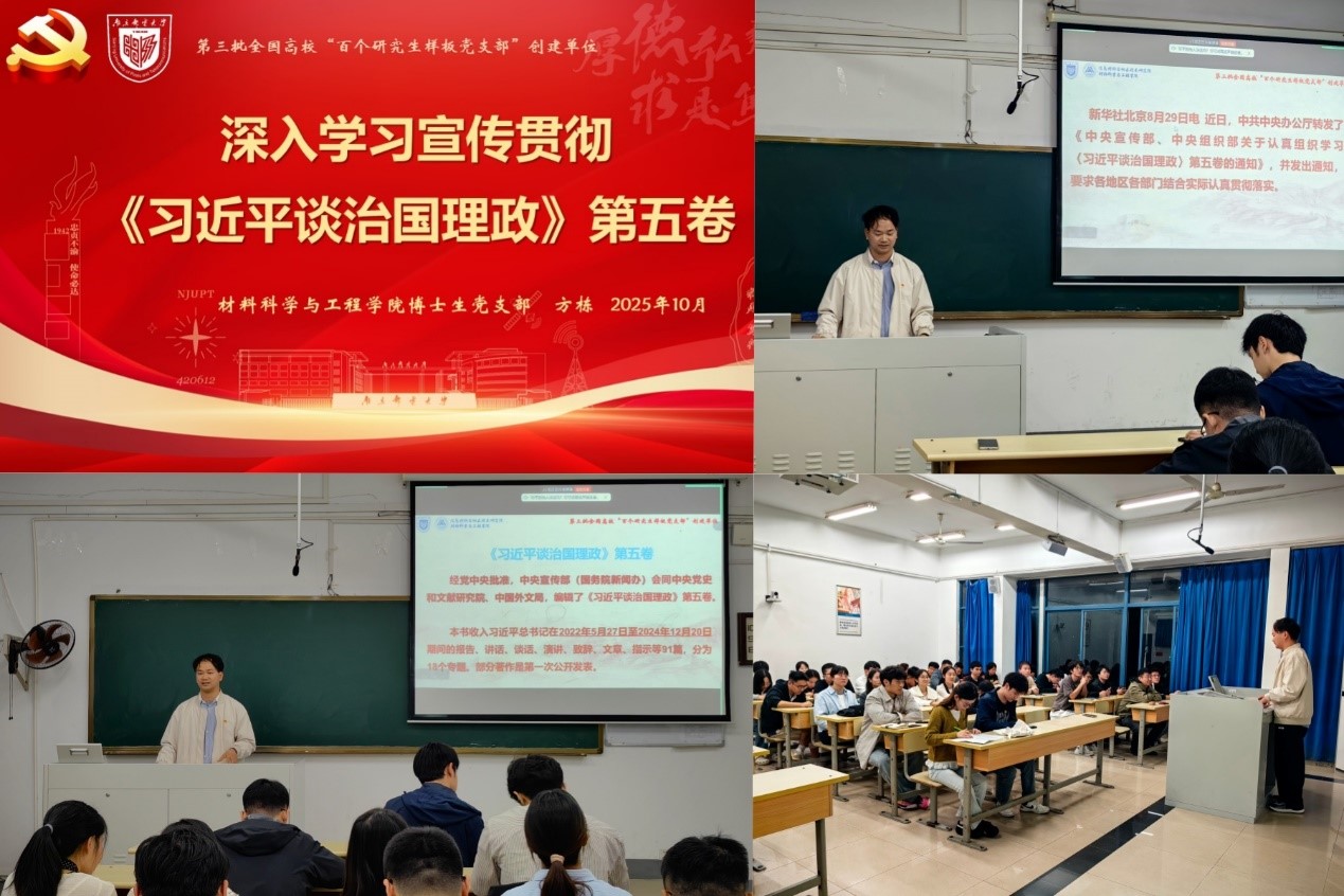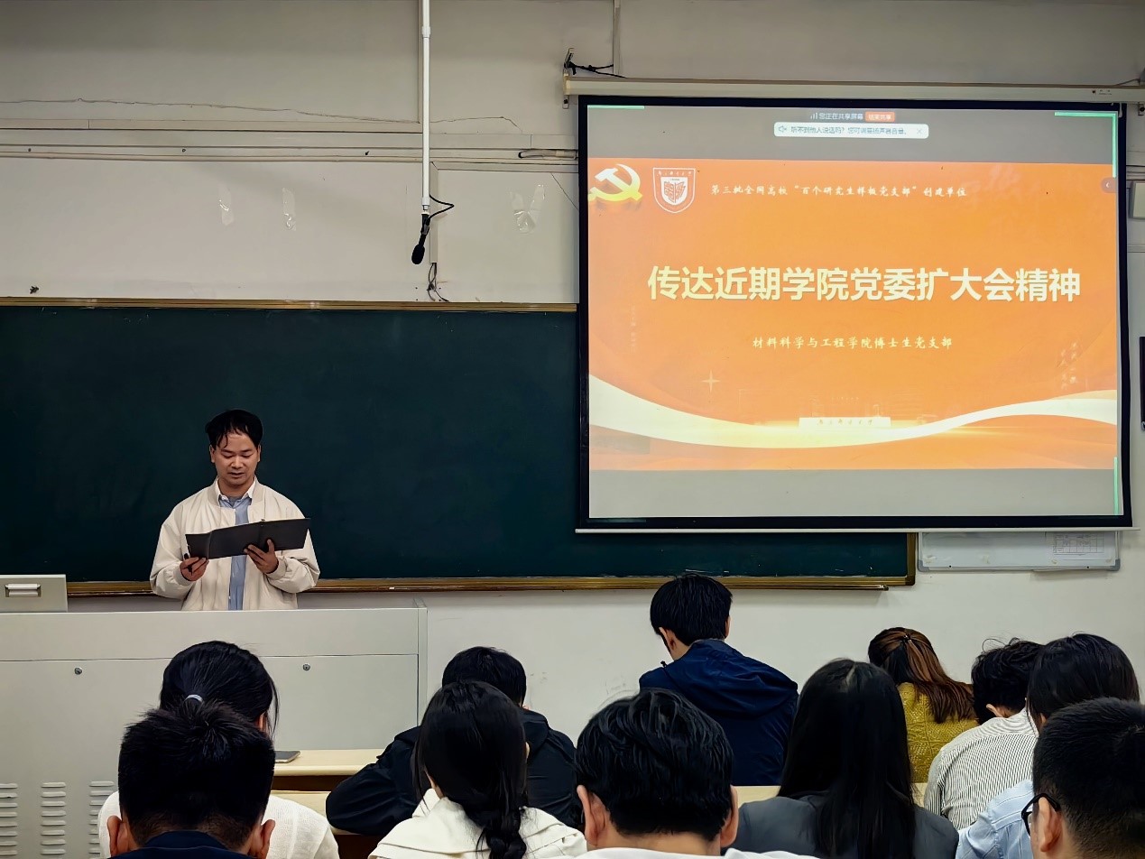 为深入学习贯彻习近平新时代中国特色社会主义思想,切实增强博士生党员的思想认同和行动自觉,2025年10月16日,材料科学与工程学院博士生党支部通过线上线下相结合的方式学习《习近平谈治国理政》第五卷。会议由支部书记方栋主持,支部全体党员和入党积极分子参会。