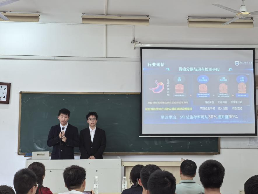 启动仪式以竞赛路演拉开序幕。学院邀请刚刚斩获中国国际大学生创新大赛(2025)金奖的团队做项目路演。金奖团队从项目选题的“痛点捕捉”,到实验创新的“结果呈现”毫无保留地分享了从实验室走向全国赛场的“通关秘籍”。他们的分享引发全场共鸣,台下学员纷纷提笔记录,团队的“实战干货”增强了大家参与创新竞赛和项目的决心。