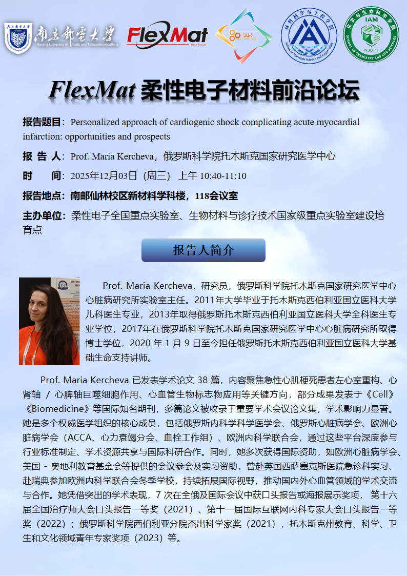 FlexMat柔性电子材料前沿论坛: 俄罗斯科学院托木斯克国家研究医学中心 Prof. Maria Kercheva