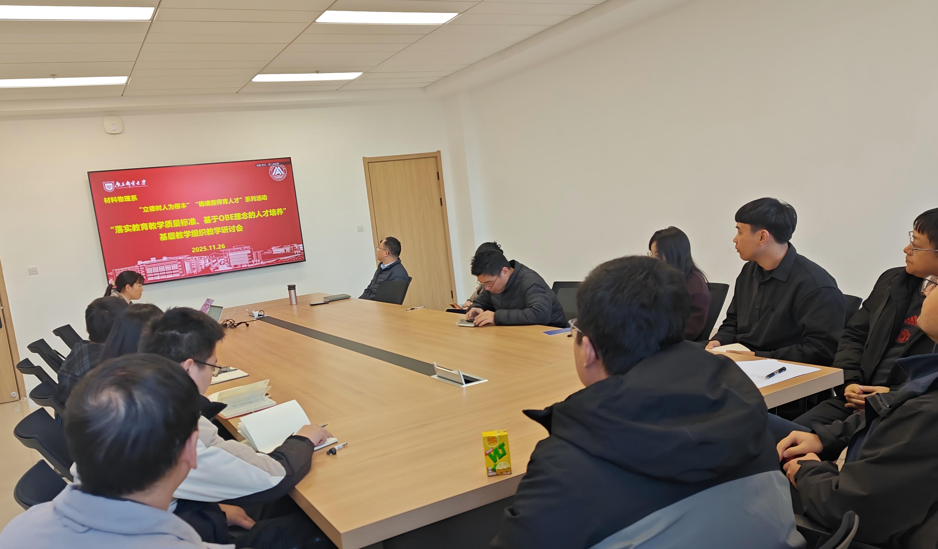 为深入贯彻落实“立德树人”根本任务,强化教育教学质量意识,推动人才培养模式系统化、科学化转型,2025年11月26日,材料科学与工程学院材料物理系举办了以“落实教学质量标准,OBE理念育新人”为主题的教学研讨会。本次活动作为学院“立德树人为根本·铸魂强师育人才”系列活动中基层教学组织建设的重要环节,得到了材料物理系全体教师的支持,围绕成果导向教育理念的实施路径与质量保障机制展开了深入探讨。