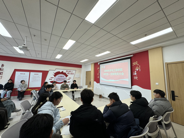 2025年12月31日,值此岁末更迭之际,材料科学与工程学院研究生第一党支部在材料楼413会议室召开党员大会,主要议题是讨论叶娟、李怀静、郝士杰、祝泽鑫四位同志预备党员转正事宜。会议由党支部书记刘金硕同志主持。