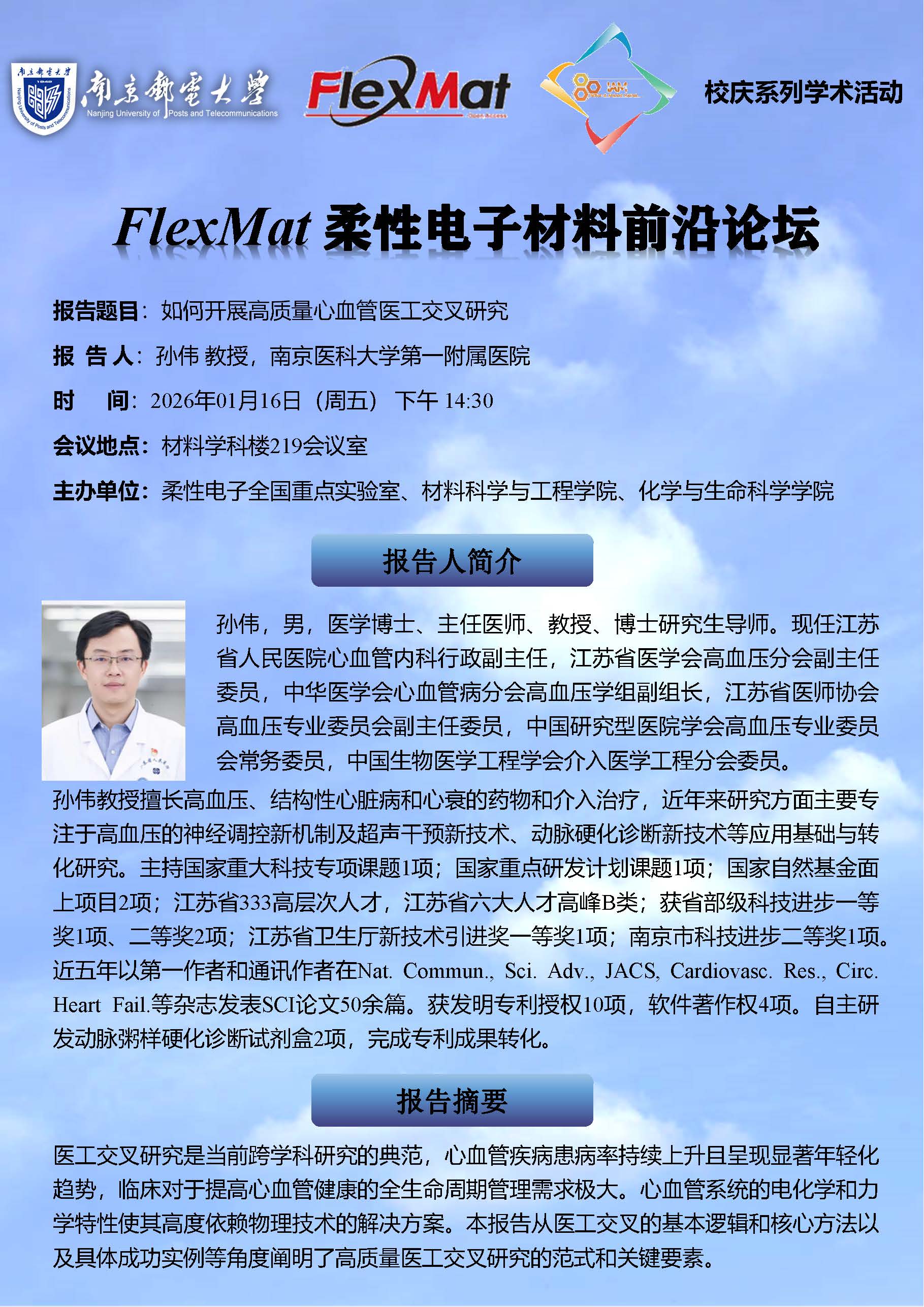 FlexMat柔性电子材料前沿论坛:南京医科大学第一附属医院 孙伟教授