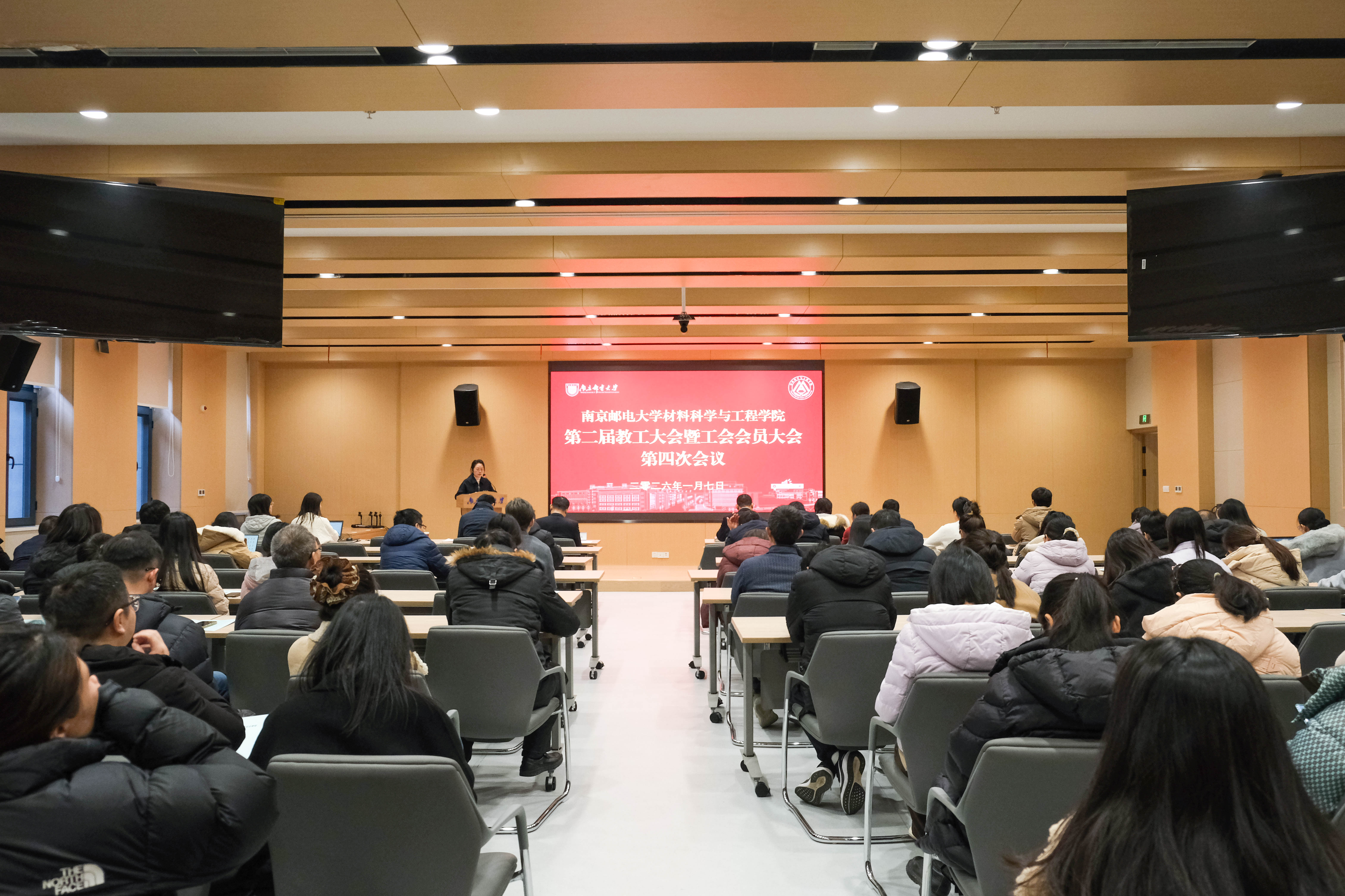2026年1月7日,南京邮电大学材料科学与工程学院第二届教工大会暨工会会员大会第四次会议在学科楼报告厅举行。学院全体教职工参加本次大会,共同回顾总结2025年工作。大会由学院分工会主席、学院党委副书记吕蔷蔷主持。