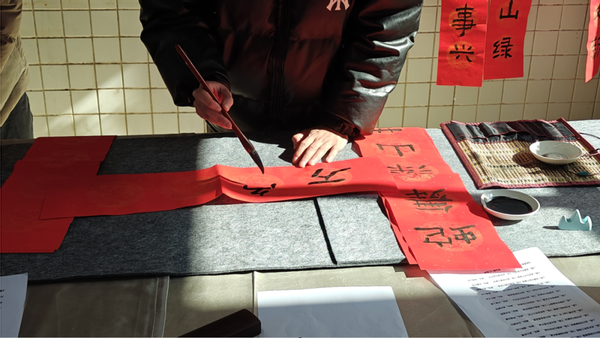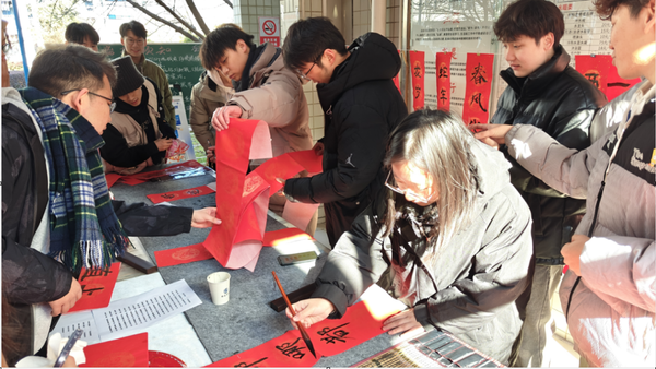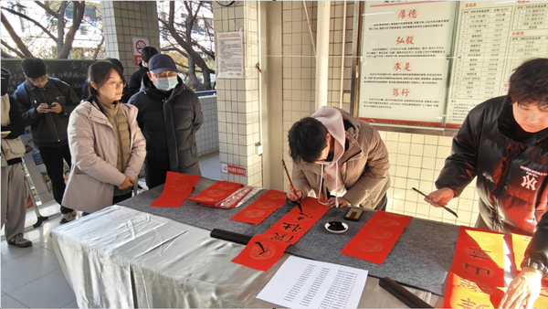 现场,一股浓郁的墨香弥漫在空气中,沁人心脾。随着笔尖的舞动,一副副春联逐渐成形,红纸黑字,相得益彰。每一副春联都承载着师生们对新一年的美好愿景,有的寓意着学业有成,有的寄托着家庭和睦,还有的期盼着国泰民安。随后,他们将这些亲手写就的“福”字和春联精心包装,准备送给敬爱的老师、亲爱的家人和可爱的同学,提前传递新春的祝福与温馨的问候。这份特别的礼物,不仅传递着节日的喜悦,更凝聚着师生之间深厚的情谊,让整个活动现场充满了浓浓的年味与温暖。