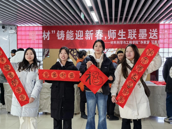 新春佳节,承载着丰富的历史文化内涵,是中华民族最重要的传统节日之一。在这辞旧迎新之际,材料科学与工程学院于1月10日在梅苑和菊苑开展了“增‘材’铸能迎新春,师生联墨送祝福”迎新春送对联活动。活动邀请校关工委副主任储成祥老师,学院党委副书记、副院长吕蔷蔷、各年级辅导员老师及梅苑、菊苑的宿管阿姨们,共同书写新春对联,将美好祝愿融入墨香之中。